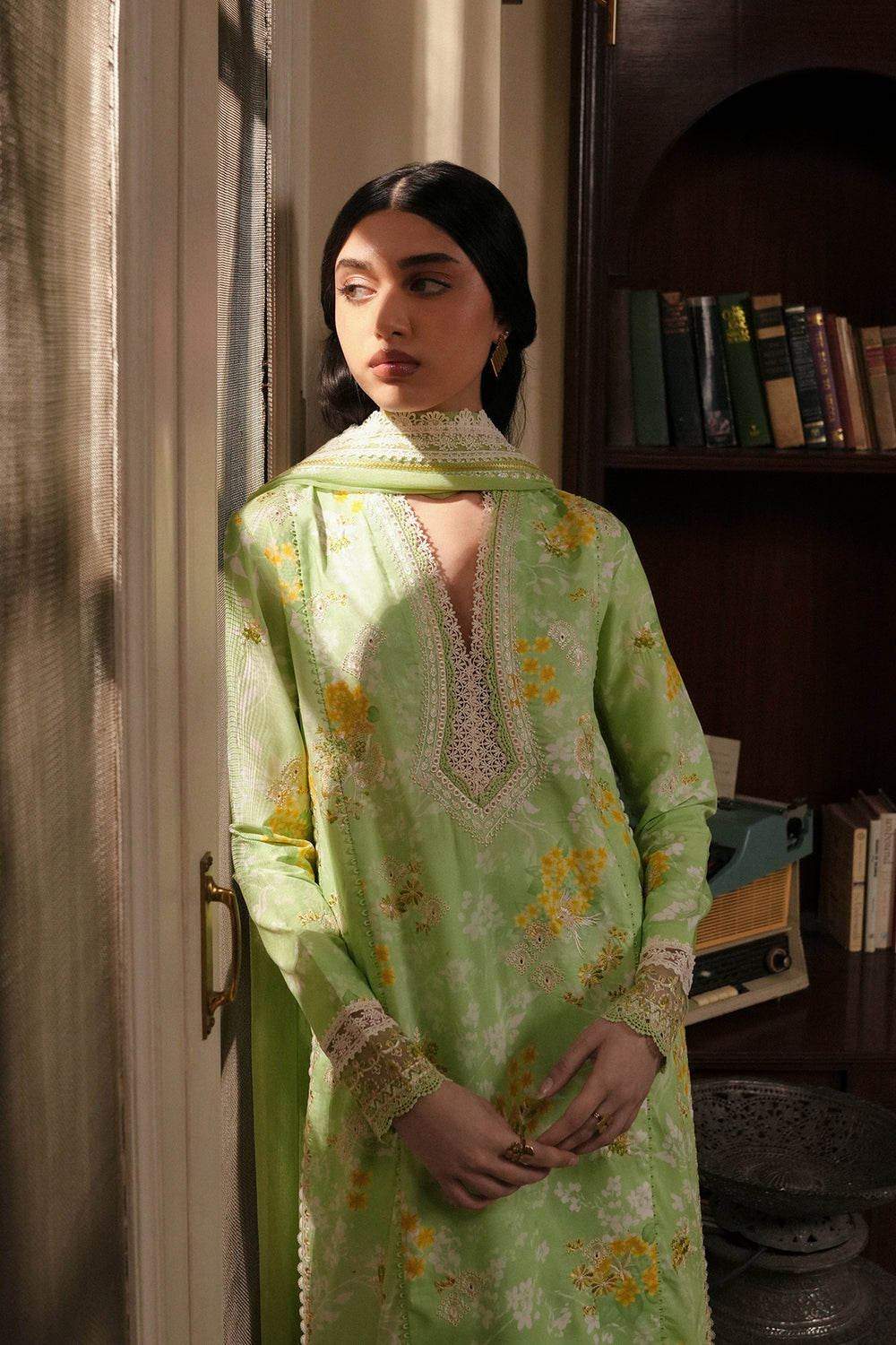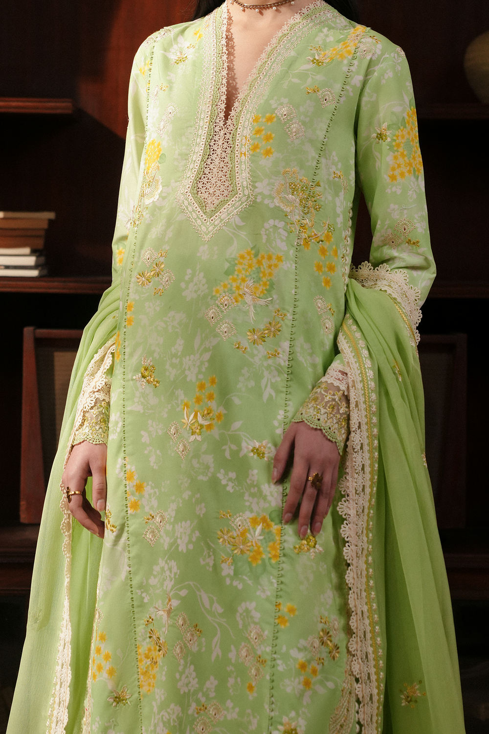 PRINTED LAWN GREEN DIGITAL PRINTED EMBROIDERED FRONT LEFT PANEL 1 PC