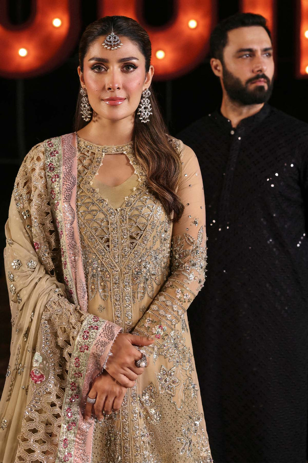 • Embroidered Organza Neck Jaal